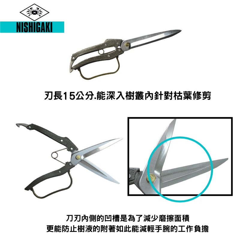 | 產品規格 | 產品編號 N-208 產品名稱 職業葉刈鋏200剪葉剪5英寸 全長 300mm 刀刃長度 150mm 重量 約270g 產地:日本 |