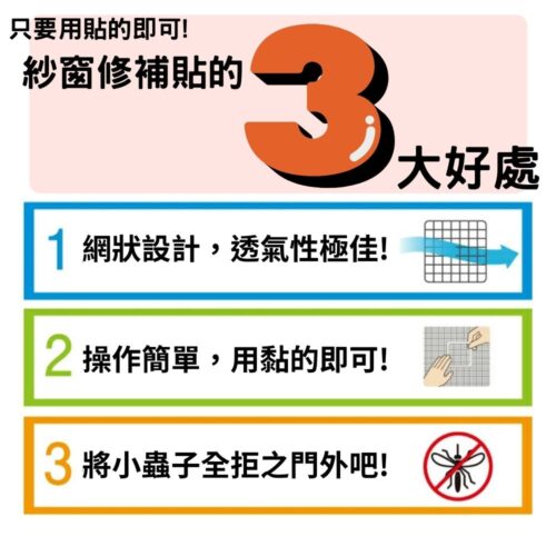 | 產品特色 | 修補紗窗紗門,避免破洞讓蚊蟲跑進來 |