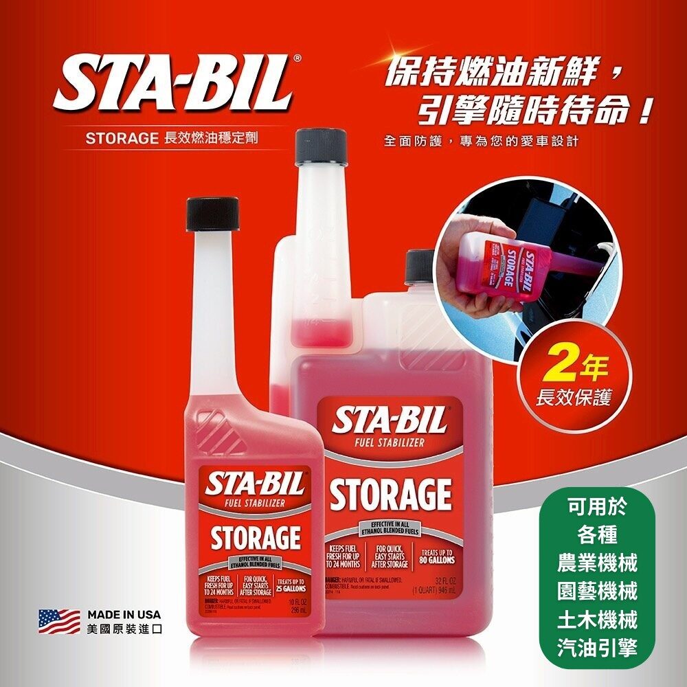 STA-BIL® 品牌可安全用於燃油噴射引擎和化油器發動機,且不會損壞觸媒轉換器或氧氣感知器。STA-BIL® Storage可防止膠質和清漆的形成,從而堵塞燃油噴射器,並且實際上包含燃油噴射器清潔劑,可進一步提高引擎的性能。
