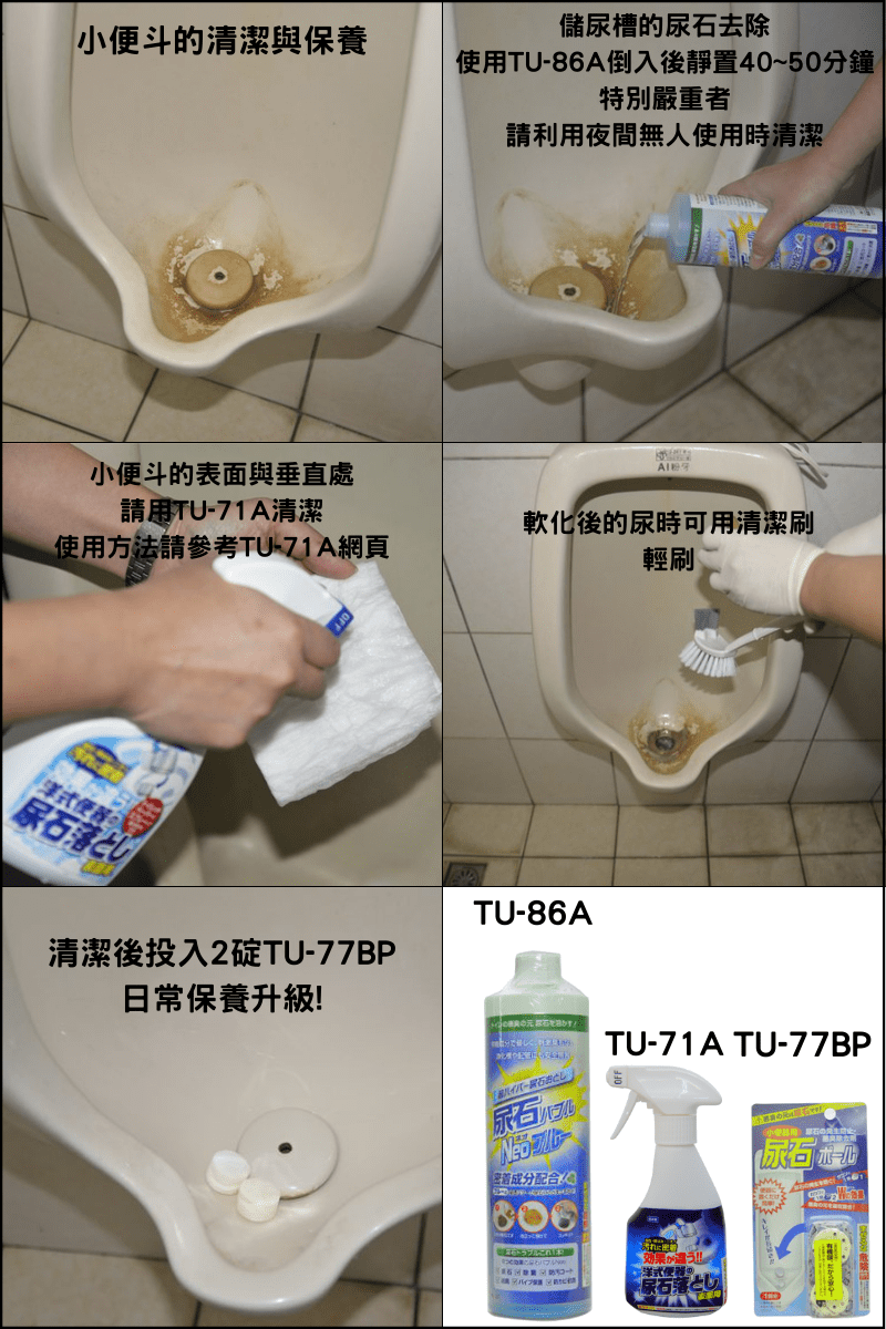 | 產品規格 | 品名 高森小便斗尿石去除劑 型號 TU-86 成分 氨基磺酸 水 添加劑 容量 500ml(1劑) 產地 日本 |